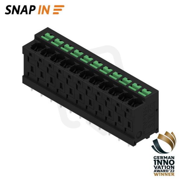 Svorka PCB, 320 V, 32 A, Rozteč v mm: 5.00, 4 mm², Počet pólů: 11, SNAP IN, Připojení pájením přetavením průchozím otvorem, 180°, Tube