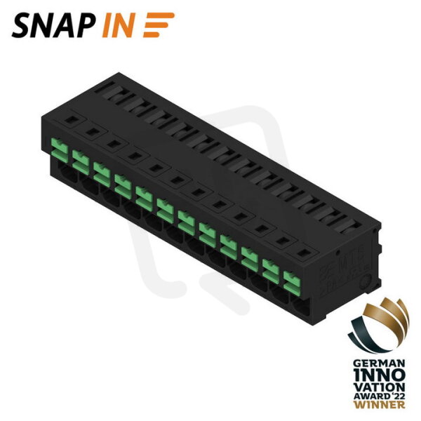 Svorka PCB, 320 V, 32 A, Rozteč v mm: 5.00, 4 mm², Počet pólů: 12, SNAP IN, Připojení pájením přetavením průchozím otvorem, 90°, Tube