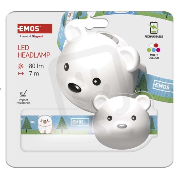 LED nabíjecí čelovka medvěd P3543, 80 lm, 7 m, Li-Pol 500 mAh EMOS P3543