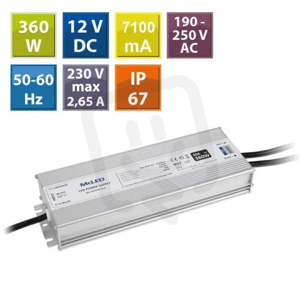 Napájecí zdroj 360W, DC12V/30A, IP67, hliníkové provedení MCLED ML-732.098.45.0