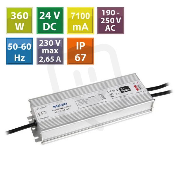 Napájecí zdroj 360W, DC24V/15A, IP67, hl najdete v kategoriích Svítidla, Příslušenství pro svítidla, LED driver, Svítidla, světelné zdroje a LED osvětlení, výrobce McLED, EAN 8595607142878, kód dodavatele . Napájecí zdroj 360W, DC24V/15A, IP67, hliníkové provedení MCLED ML-732.098.45.1 nabízíme od 1 ks. Kód EMAS Napájecí zdroj 360W, DC24V/15A, IP67, hl je ELSVOS1368120.