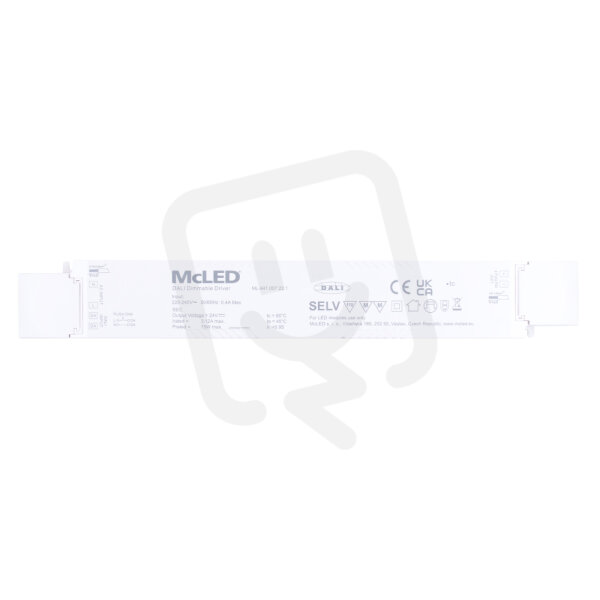 Stmívatelný napěťový zdroj pro LED pásky - výkon 75W, výstupní napětí DC 24V, proud max. 3,125A. IP20. Vstupní napětí 220 - 240V AC, materiál krytu: plast. Rozměry 307x43x30mm, hmotnost 318g. Stmívání pomocí DALI nebo tlačítkem. Při výběru zdroje počítejte s výkonovou rezervou min. 20%. Doba náběhu cca 0,5 - 2s. Certifikace: CE, SELV, MM.