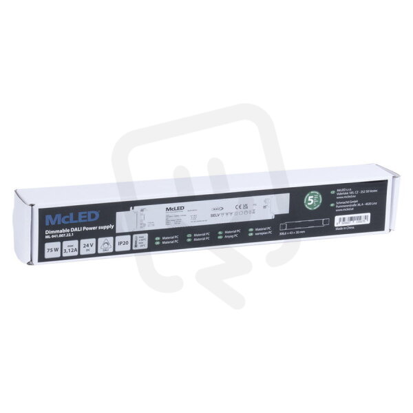 Napájecí zdroj 75W, DC24V/3,125A, IP20, najdete v kategoriích LED driver, Příslušenství pro svítidla, Svítidla, Svítidla, světelné zdroje a LED osvětlení, výrobce McLED, EAN 8595607155670, kód dodavatele ML-941.007.22.1. Napájecí zdroj 75W, DC24V/3,125A, IP20, řízení DALI a tlačítko nabízíme od 1 ks. Kód EMAS Napájecí zdroj 75W, DC24V/3,125A, IP20, je ELSVOS1801890.