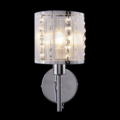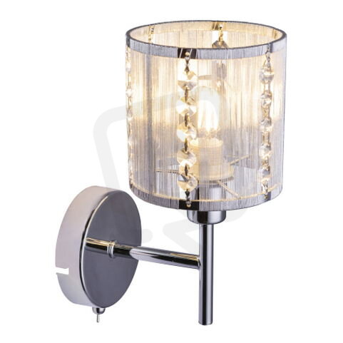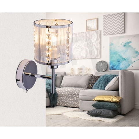 Nástěnné svítidlo WALLA chrom, stříbrné kovové tyče, K5 křišťály průhledné, vypínač, 12x25cm, H:17cm, bez žárovky 1xE14, 40W 230V GLOBO 15091W