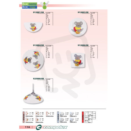 912884/08 Str.nást.sv.pr400 E27 2x60W najdete v kategoriích Svítidla, Stropní a nástěnné svítidlo, Svítidla, světelné zdroje a LED osvětlení, výrobce Compolux, EAN 8590780745045, kód dodavatele . Nástěnné svítidlo Kids Compolux 912884/08 2x60 W nabízíme od 1 ks. Kód EMAS 912884/08 Str.nást.sv.pr400 E27 2x60W je SVINNA0542618.