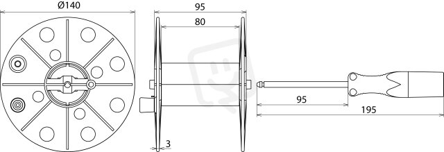 Navíjecí kotouč, plast šedý, B 80mm vedení 100m, červené DEHN 585211