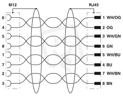 Síťový kabel, Ethernet CAT5 (1 GBit/s), 8-pólový, PUR bezhalogenové, vodní modř RAL 5021, stíněná, Zástrčka přímo RJ45 Push Pull IP67, na Zásuvka přímo M12 SPEEDCON, kódování: A IP67, délka kabelu: 5 m
