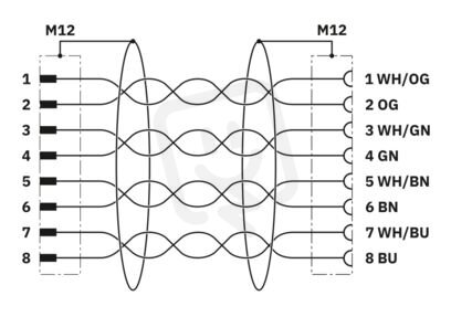 Síťový kabel, Ethernet CAT6A (10 GBit/s) CAT6A (10 GBit/s), 8-pólový, PUR bezhalogenové, vodní modř RAL 5021, stíněná (Advanced Shielding Technology), Zástrčka přímo M12, kódování: X IP67, na Zásuvka přímo M12, kódování: X IP67, délka kabelu: 1 m