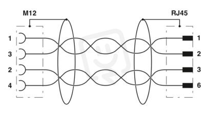 Síťový kabel, Ethernet CAT5 (100 MBit/s), 4-pólový, PUR bezhalogenové, vodní modř RAL 5021, stíněná (Advanced Shielding Technology), Zásuvka přímo M12 Push Pull, kódování: D IP67, na Zástrčka přímo RJ45 IP20, délka kabelu: 2 m