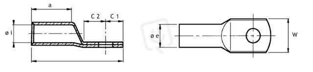 Kompresní kabelová oka Cu, DIN 46235. Technické údaje - Materiál: Cu-ETP podle DIN EN 13600; Povrch: elektrolyticky pocínovaný, jiné povrchy na vyžádání; zvláště vhodné pro jemně laněné vodiče podle IEC 228; žíhané na tvrdost mědi F 20. Provedení: Průřez: 500 mm2; ∅ šroubu: 20 mm; Kódové číslo: 42; W: 60; ∅ i: 31; ∅ e: 42; C1: 25; C2: 26; a: 75; L: 149; Hmotnost na 100 ks ~kg: 81; Lisování 7 mm: 3; Lisování 5 mm: -; podle DIN: x; PU/ks 1.