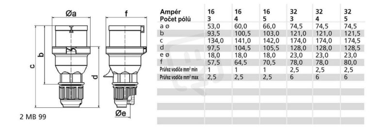 Vidlice 32A 5p 400V IP44 6h Quick-Connect