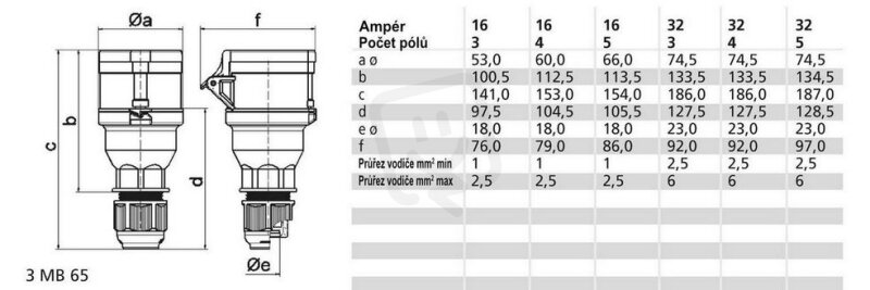 16A 5p (3P+N+PE) 400V (200/346 do 240/415V~) 6h IP44