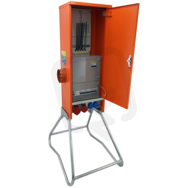 Zásuvky: 1x 32A/400V/5p, 1x 16A/400V/5p, 4x 230V s ochr. kolíkem (česká),
