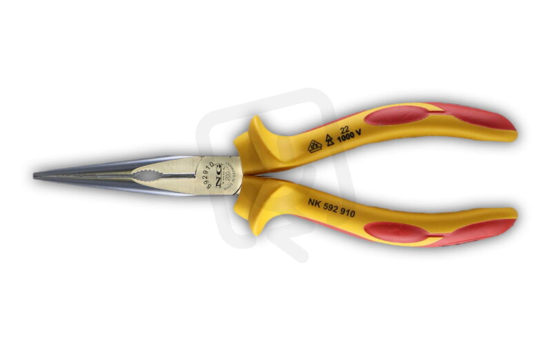 1000 V telefonní kleště s půlkulatými ozubenými čelistmi, jsou nástrojem používaným pro elektrotechnické práce, které vyžadují ochranu před nebezpečím úrazu elektrickým proudem. Tyto kleště mají uzké ozubené čelisti, které jsou navrženy tak, aby se snadno