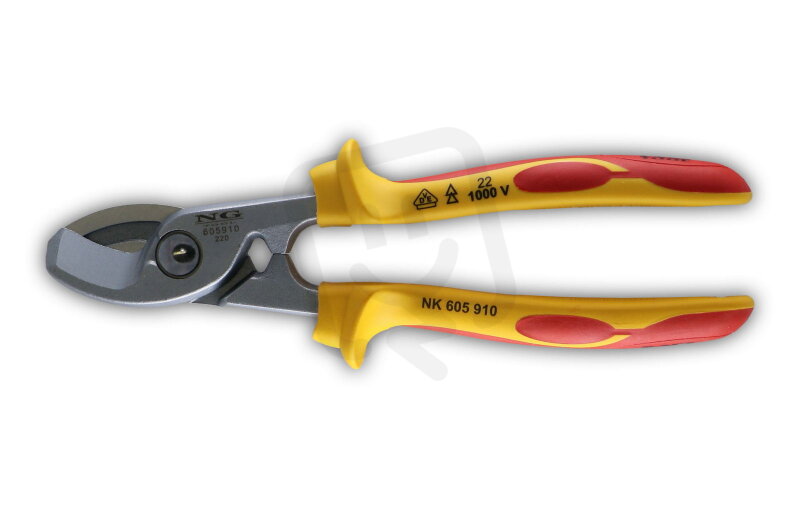 1000 V kabelové nůžky, jsou nástrojem používaným pro elektrotechnické práce, které vyžadují ochranu před nebezpečím úrazu elektrickým proudem. Tyto kabelové nůžky jsou určené ke stříhání měděných a hliníkových kabelů a laněných vodičů, dle specifikace._br