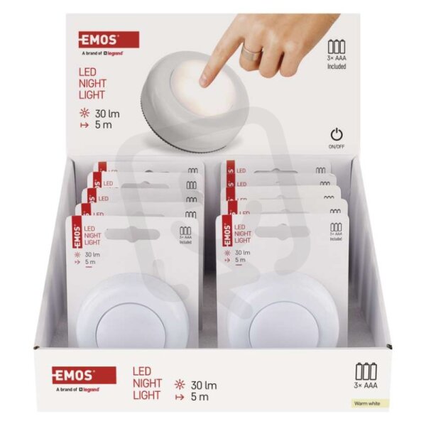 NOČNÍ SVĚTLO WW 3×AAA, ON/OFF SWITCH, 10 najdete v kategoriích Svítidla, Orientační a noční svítidlo, Orientační svítidlo, Svítidla, světelné zdroje a LED osvětlení, výrobce Emos, EAN 8592920152539, kód dodavatele P4722. LED noční světlo P4722 na 3× AAA, 10 ks, display box EMOS P4722 nabízíme od 10 ks. Kód EMAS NOČNÍ SVĚTLO WW 3×AAA, ON/OFF SWITCH, 10 je ELSVOS1995930.