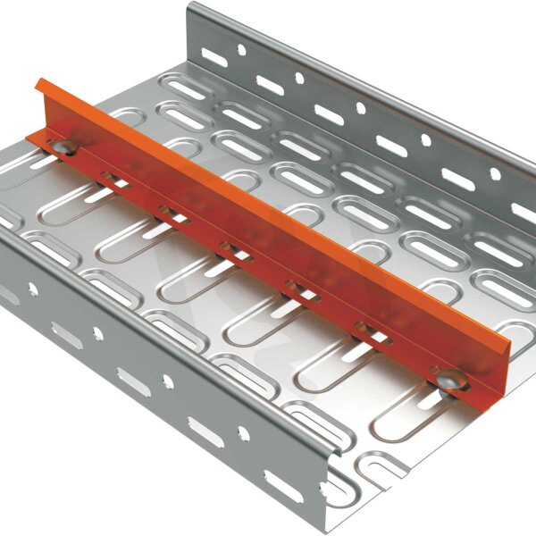 Přepážka pro kabelové žlaby s výškou bočnice 100 mm, slouží pro podélné rozdělení kabelového žlaby na více samostatných sekcí, zajišťuje mechanické i elektromagnetické oddělení jednotlivých sekcí, povrchová úprava - Magnelis®