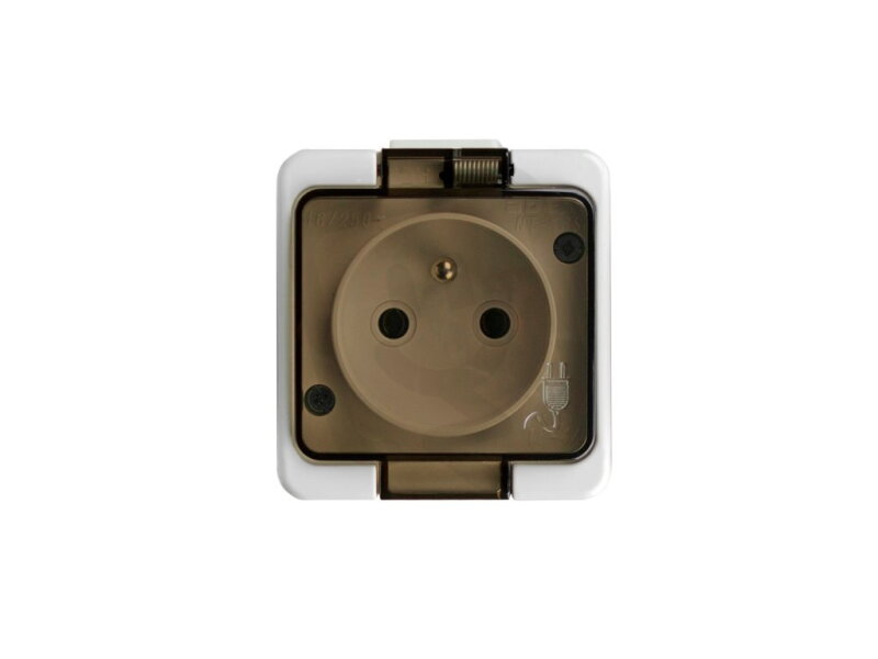 NT-16SL zásuvka jednonásobná 2p+Z 16A/250V s kouřovým víčkem IP44 bílá