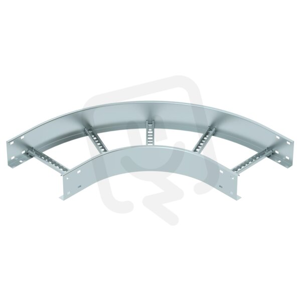 Oblouk 90°, horizontální, s přivařenou příčkou, pro všechny typy kabelových žebříků s výškou bočnice 110 mm.