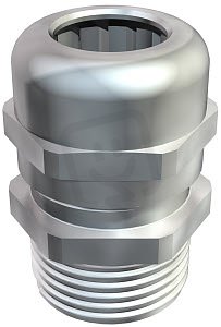 Robustní kabelová vývodka kloboučkového tvaru s metrickým připojovacím závitem dle IEC 423 pro vysoké nároky na těsnost. Odlehčení tahu, zajištění proti pootočení a utěsnění v celém rozsahu upínání. Pro větší tloušťky stěn krabice ve spojení s pojistnou maticí. Těsnicí kroužek z neoprénu. Svěrná vložka z polyamidu. S předem namontovaným těsnicím kroužkem na připojovacím závitu, zkoušeno podle normy EN 50262, stupeň krytí IP 68 při 5 barech / 1 hod.