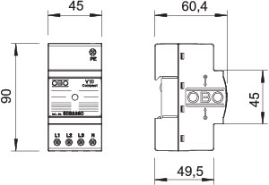 OBO V10 COMPACT 255 Svodič přepětí, typ 2+3, TN/TT, 60kA(8/20), 255V