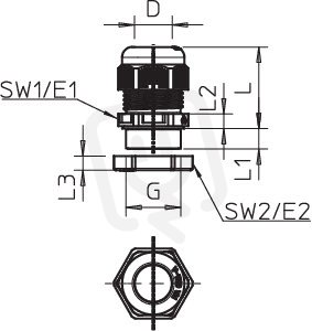 Robustní kabelová vývodka s převlečnou maticí a metrickým připojovacím závitem podle IEC 423, včetně matice.