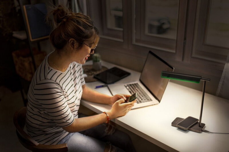 Stolní svítidlo s indukčním nabíjením, stmívatelné ve 3 krocích, s funkcí nastavení teploty barev.