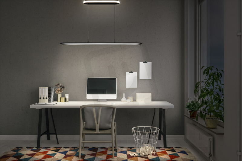 Výhody výrobku: Závěsná montáž pro osvětlení pracovní plochy. Ambientní světlo kolem svítidla. Click-DIM: stmívatelné ve třech krocích opakovaným přepínáním. Vysoká hodnota CRI > 90 pro přirozeně působící barvy. Díky UGR < 19 splňuje svítidlo požadavky na pracovní stanice VDU a snižuje únavu očí.