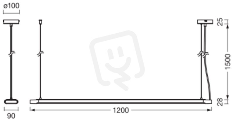 Délka (včetně kulatých svítidel): 1200.00 mm