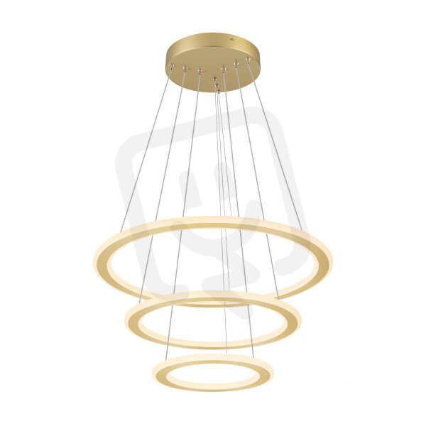 ONE FLAT závěsné svítidlo, triple, 300 cm, 2700/3000 K, DALI 2, Touch, mosaz