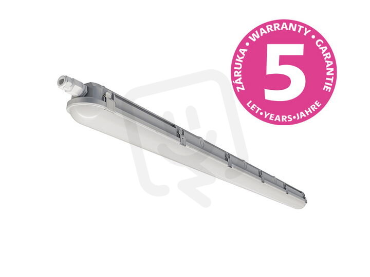 Velmi vysoká světelná účinnost 140lm/W Základna a kryt svítidla jsou z polykarbonátu, kryt svítidla je přichycen polykarbonátovými klipy