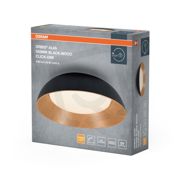 Orbis Alva 505MM 36W 830 Click DIM Black and Wood Decor OSRAM 4099854446337