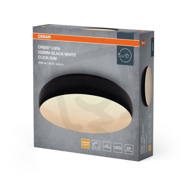 ORBIS LIVIA 520 36W830CLICKDIM BKWT OSRA najdete v kategoriích Svítidla, Stropní a nástěnné svítidlo, Svítidla, světelné zdroje a LED osvětlení, výrobce Osram, EAN 4099854448287, kód dodavatele 4099854448287. Orbis Livia 520MM 36W 830 Click DIM Black and White OSRAM 4099854448287 nabízíme od 1 ks. Kód EMAS ORBIS LIVIA 520 36W830CLICKDIM BKWT OSRA je ELOSOS1985258.