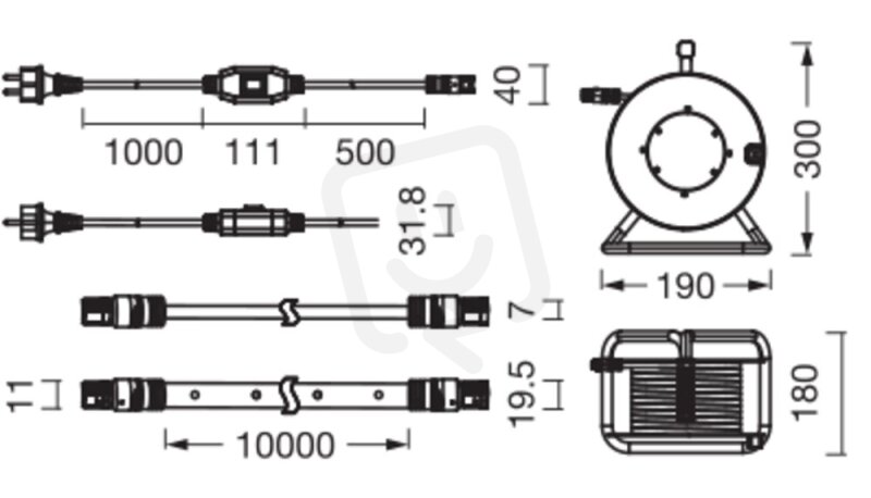 Výbava/příslušenství: Vybaveno 1,5m kabelem se zástrčkou. Kabelový naviják pro snadné skladování. Včetně montážního příslušenství.