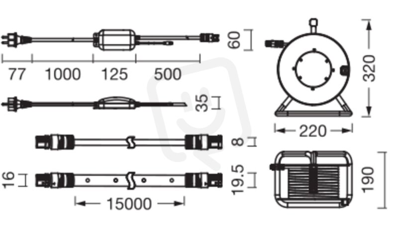 Délka (včetně kulatých svítidel): 15000.00 mm