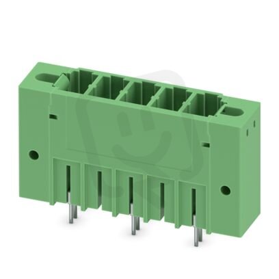 Zásuvka konektoru desky plošných spojů, jmenovitý průřez: 6 mm², barva: zelená, jmenovitý proud: 32 A, jmenovité napětí (III/2): 1000 V, povrch kontaktů: Sn, typ kontaktu: Trn, počet řad: 1, počet pólů: 3, řada výrobků: PCV 5/..-GF, rozteč: 15,24 mm, montáž: Vlnové pájení, pin-layout: Lineární pinning, délka pinu [P]: 5 mm, počet pájecích kolíků na každý potenciál: 3, systém zásuvných hlavic: COMBICON PC 5, Orientace tvaru konektoru: Standardní, zajištění: Šroubový zámek, způsob upevnění: Závitová příruba, způsob balení: zabaleno v krabici