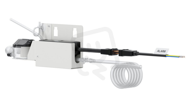 Komfortní charakteristiky Montážní skupina čerpadla se skládá z modulu čerpadla a modulu plováku. Oba moduly jsou vzájemně propojeny jak elektricky, tak prostřednictvím hadice k odvodu kondenzátu. Čerpadlo pracuje velmi tiše. Vysoce kvalitní mosazná přípojka je výrazně stabilnější než srovnatelné varianty z plastu. Případné požadavky na údržbu lze snadno identifikovat díky průhlednému modulu plováku. Čerpadlo odolné proti stříkající vodě je vybaveno bezpečnostním omezovačem teploty.