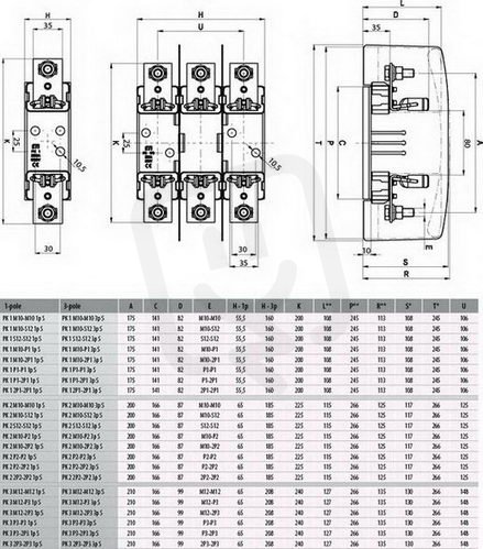 Pojistkový spodek PK 2 M10-P2 1p S NH2 ETI 004123203