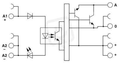 Vstupní elektronické relé, s výstupem stejnosměrného napětí v protitaktu, přenosový kmitočet: 100 kHz, se světelnou indikací a s ochranným zapojením ve vstupním a výstupním obvodu, vstup: 24 V DC, výstup: 14 - 30 V DC/50 mA