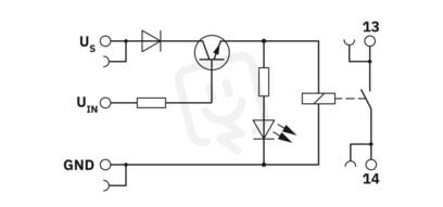 PLC-INTERFACE sestávající ze základní svornice s přípojkou push-in a zásuvného miniaturního relé s interním obvodem zesilovače a odpovídajícím pomocným napájením pro slabé zdroje signálu, 1 spínacím kontaktem, jmenovitým vstupním napětím 24 V DC