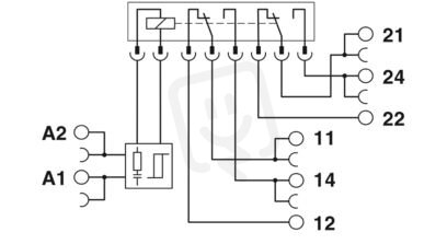PLC-INTERFACE sestávající ze svornicové základny PLC-BSC.../21-21/SO46/HI se šroubovým připojením a výměnného miniaturního relé s výkonovým kontaktem, 2 přepínací kontakty, jmenovité vstupní napětí 230 V AC, s definovanými spínacími a vypínacími prahovými hodnotami