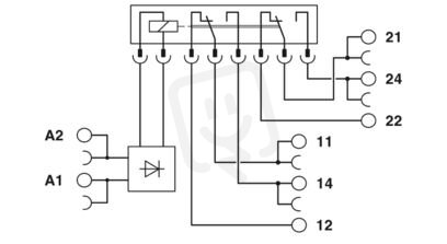 Rozhraní PLC-INTERFACE sestávající z patice relé a zasouvatelného bezpečnostního relé s nuceně vedenými kontakty podle normy DIN EN 61810-3, Šroubové připojení, 2 přepínače, nuceně vedené, Ochranná dioda, Vstupní napětí: 24 V DC