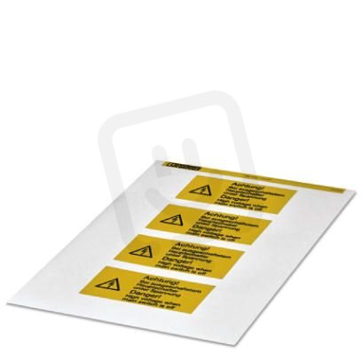 Výstražný štítek, Arch, žlutá/černá, popsané: Znak blesku a varování německy, anglicky, způsob montáže: lepení, průměr: 0 mm, velikost popisovaného pole: 105 x 52 mm, Počet jednotlivých štítků: 4