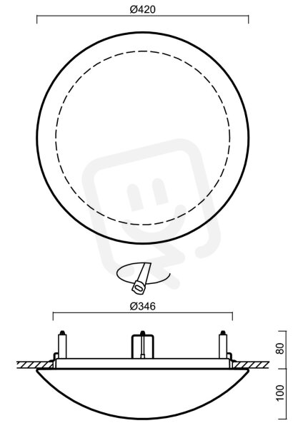 - Vhodné pro stropní montáž: