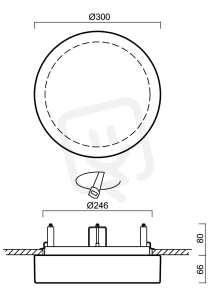 - Vhodné pro stropní montáž: