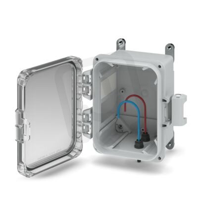 Venkovní pouzdro, Kompletní pouzdro s průhledným krytem vč. upevňovacího materiálu, barva: světle šedá (podobné RAL 7035), rozměry: 204 x 251 x 134 mm