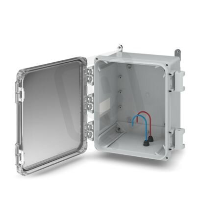 Venkovní pouzdro, Kompletní pouzdro s průhledným krytem vč. upevňovacího materiálu, barva: světle šedá (podobné RAL 7035), rozměry: 308 x 352 x 185 mm