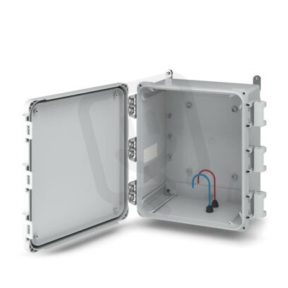 Venkovní pouzdro, Neprůhledné kompletní pouzdro včetně upevňovacího materiálu, barva: světle šedá (podobné RAL 7035), rozměry: 358 x 403 x 185 mm