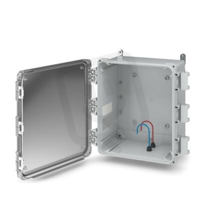 Venkovní pouzdro, Kompletní pouzdro s průhledným krytem vč. upevňovacího materiálu, barva: světle šedá (podobné RAL 7035), rozměry: 358 x 403 x 185 mm