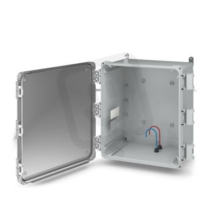 Venkovní pouzdro, Kompletní pouzdro s průhledným krytem vč. upevňovacího materiálu, barva: světle šedá (podobné RAL 7035), rozměry: 410 x 455 x 228 mm